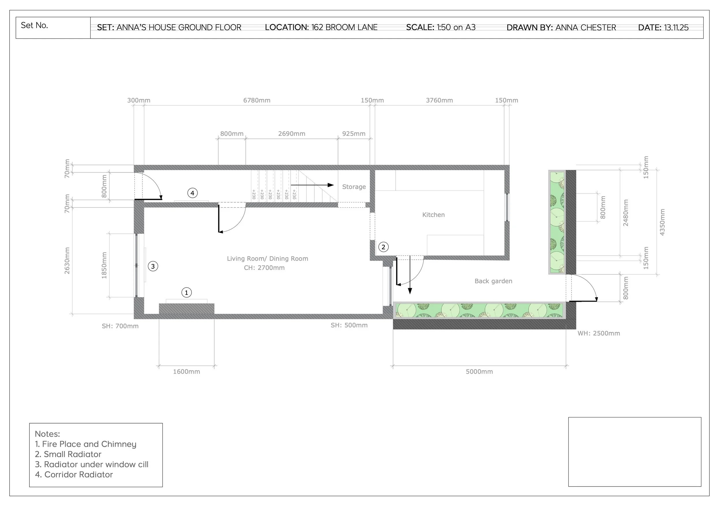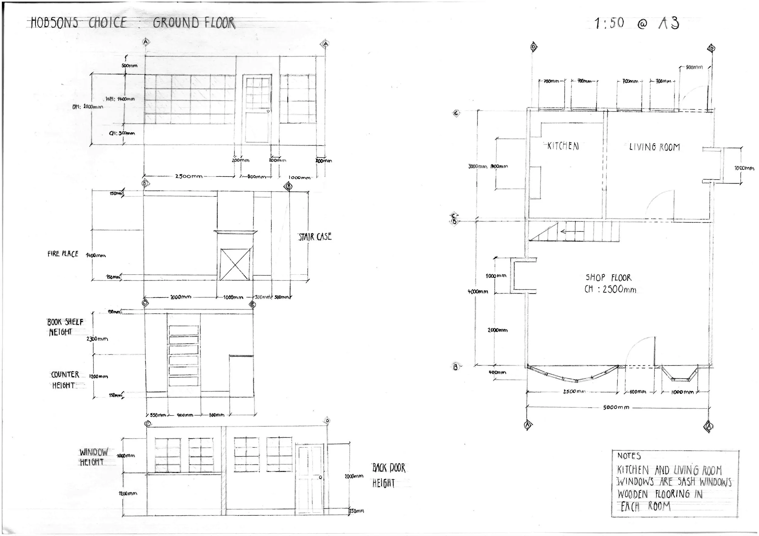 Adapting a the play, Hobson’s Choice, set in 1880’s Salford, into a tv series. After my research I was able to sketch up what I thought the layout was going to look like based on the action taking place in the show. This was my first time hand drafting floor plans and elevations.